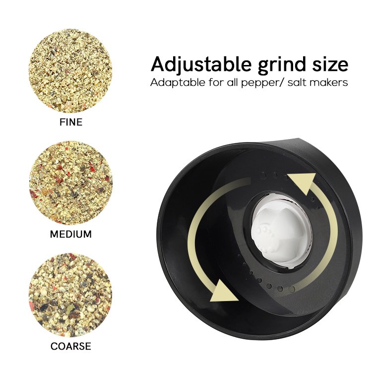 Premium ceramic grinding discs ensure fine, uniform grinding with adjustable coarseness to suit diverse seasoning needs.