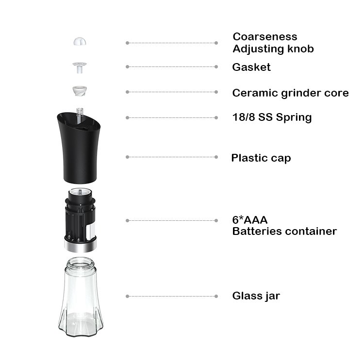 battery operated electric adjustable pepper grinder set with 2 storage jars