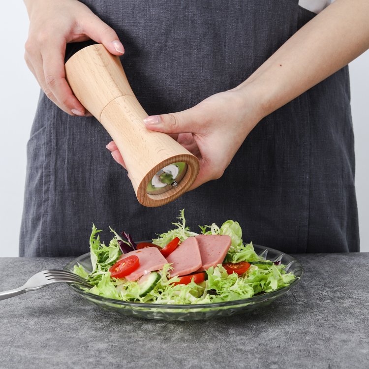Wet salt or pepper can clog the grinder and damage the wood. Always use dry, whole peppercorns or dry salt crystals. This keeps the grinder working well and prevents moisture from harming the wood.
