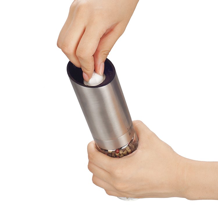 Simply tilt to grind salt, pepper, or spices—no manual turning required.