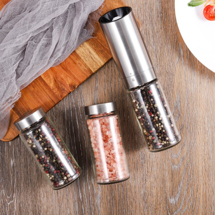 Custom Gravity Electric Slat and Pepper Grinder with 2 Spice Storage Jars