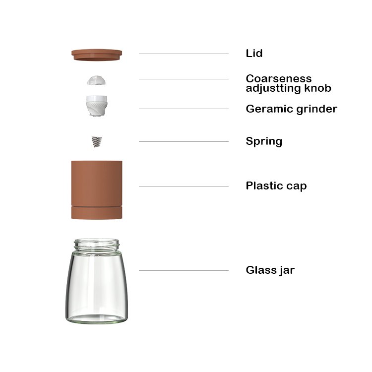 The top knob effortlessly adjusts grind coarseness, offering precise control from fine to coarse. This versatile design meets diverse culinary needs, creating added value for brands seeking multifunctional, high-performance kitchenware.