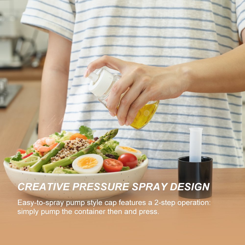 This 70ml spray bottle features a pump-top design that delivers a fine mist spray with a wide coverage area at the press of a button, enabling precise oil control for healthier cooking. Equipped with a dust cap to prevent accidental activation, it offers portability and safety. Whether for outdoor grilling, baking, or light salads, it provides a convenient and even oil application experience.