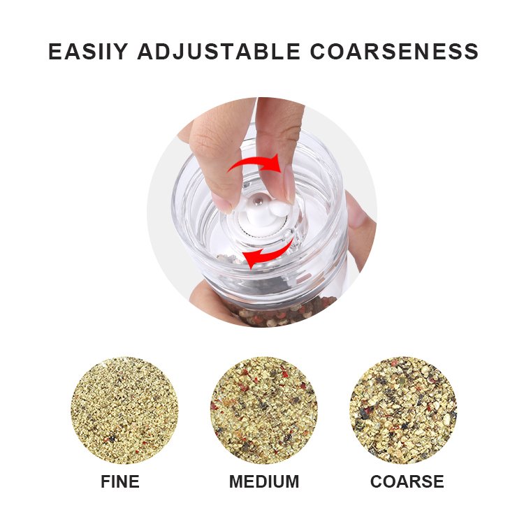 Featuring a classic retro design, adjustable ceramic burr, and transparent acrylic body, this 150ml plastic salt and pepper grinder combines style with functionality. Made from food-grade, BPA-free materials, it offers smooth, effortless grinding and precise seasoning control for both home and dining use.