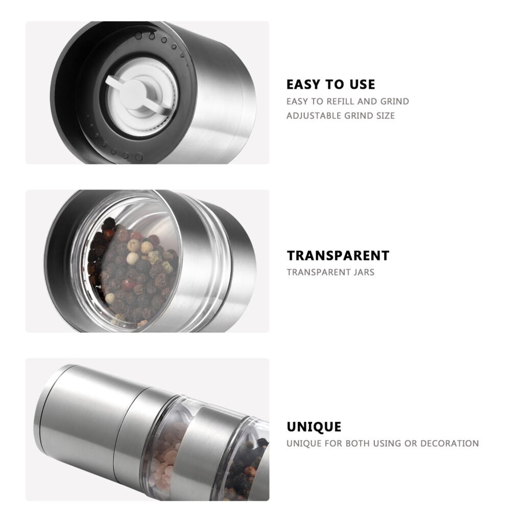 This compact salt and peppergrinder is perfect for home use, neatly organizing your favorite spices. Its stackable structure saves valuable countertop space.